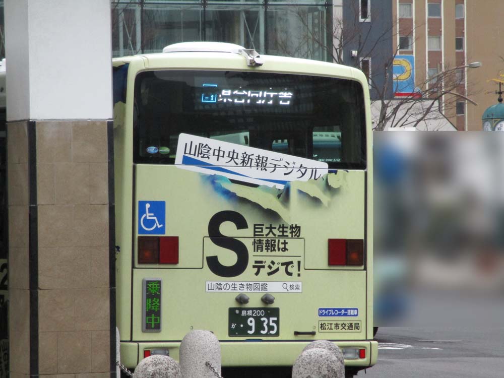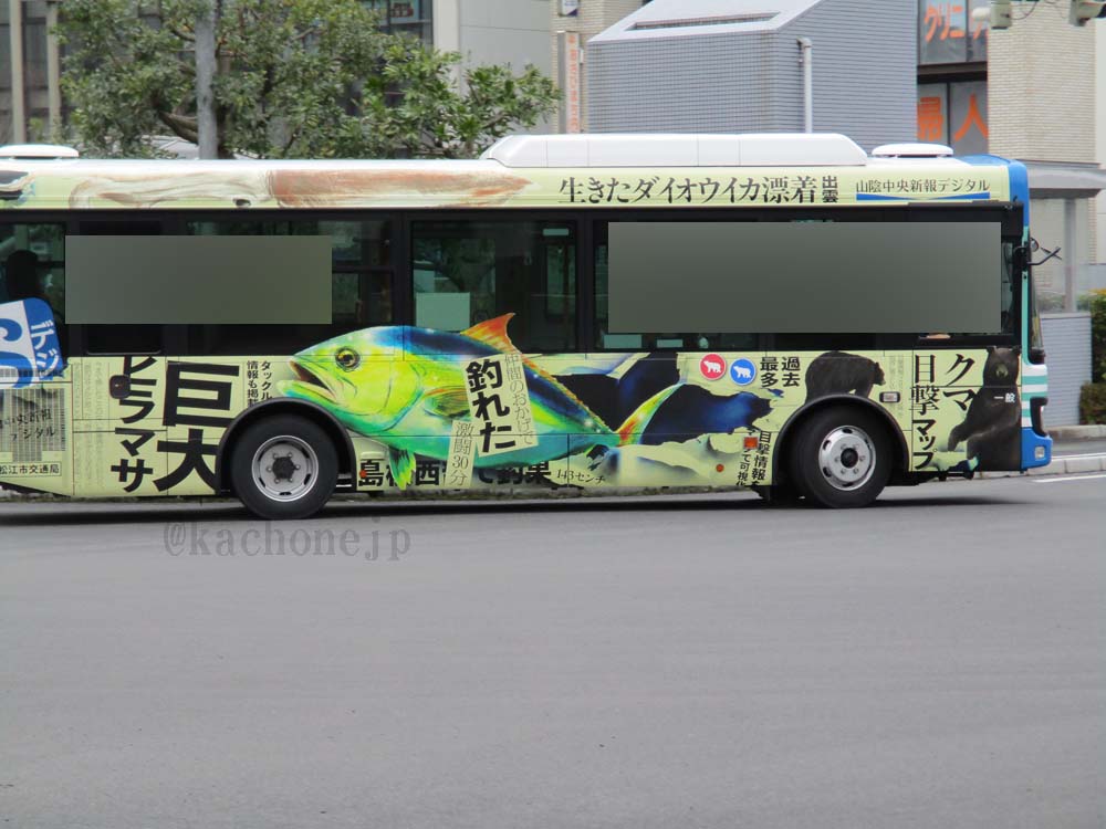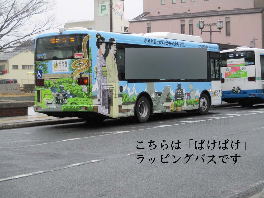 市内を走るラッピングバスもあります。 (4月下旬まで)